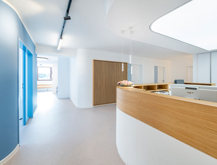 Unsere Leistungen: Entwurf, Fertigung und Einbau der Praxiseinrichtung (Empfang, Sprechzimmer und Wartebereich)